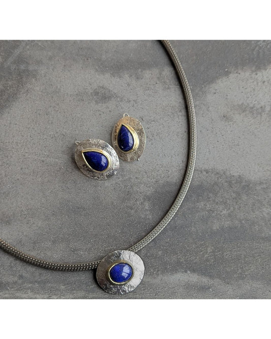 ANNE MORGAN - Silver Cerigyn earrings with lapis in 18ct setting